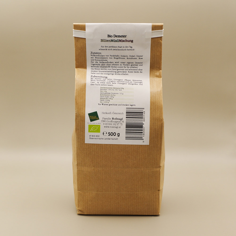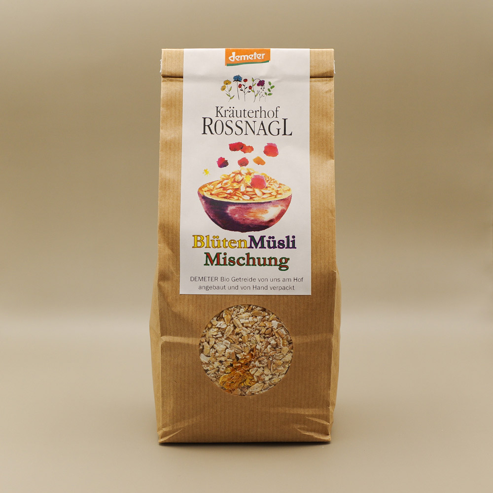 Unser Getreide und auch die Blüten wachsen auf unseren bio-dynamischen Feldern im Waldviertel, hat Demeter-Qualität und wird von Hand verpackt.