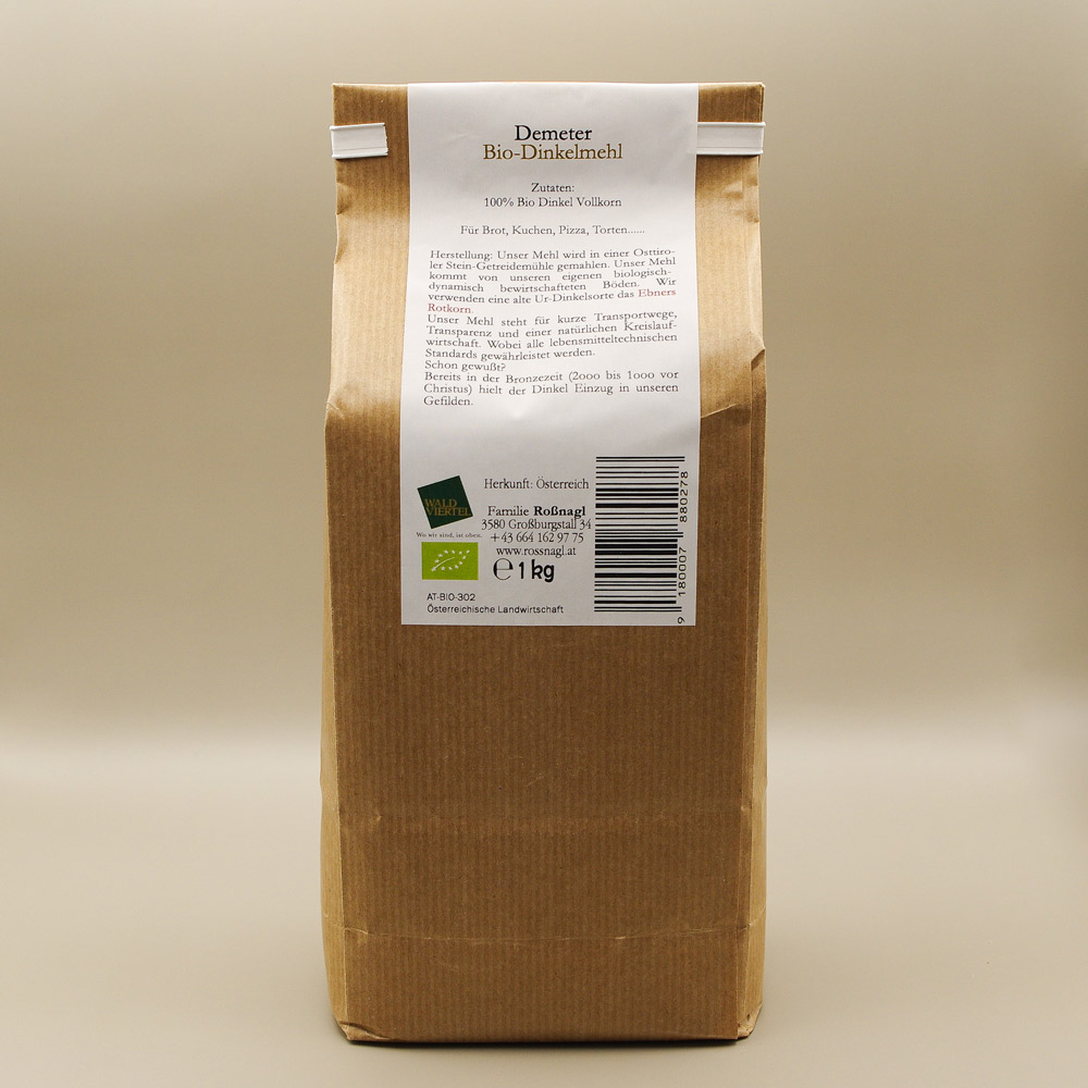 Für das Dinkel-Vollkornmehl von unseren Feldern im Waldviertel wird unser bio-dynamischer Dinkel in einer Original Osttiroler Steinmühle bei uns am Betrieb vermahlen. Der nachhaltige Anbau der für unsere Böden und das Waldviertler Klima geeigneten Sorten fördert die Naturvielfalt. Wir verwenden das Ebners Rotkorn, welches eine alte Ur-Dinkelsorte ist. Unser Mehl steht für kurze Transportwege, Transparenz und einer natürlichen Kreislaufwirtschaft.