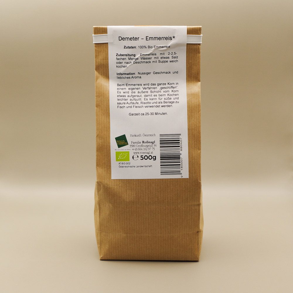 Der Demeter Bio Emmer wird bei uns am Hof angebaut und von Hand abgepackt.